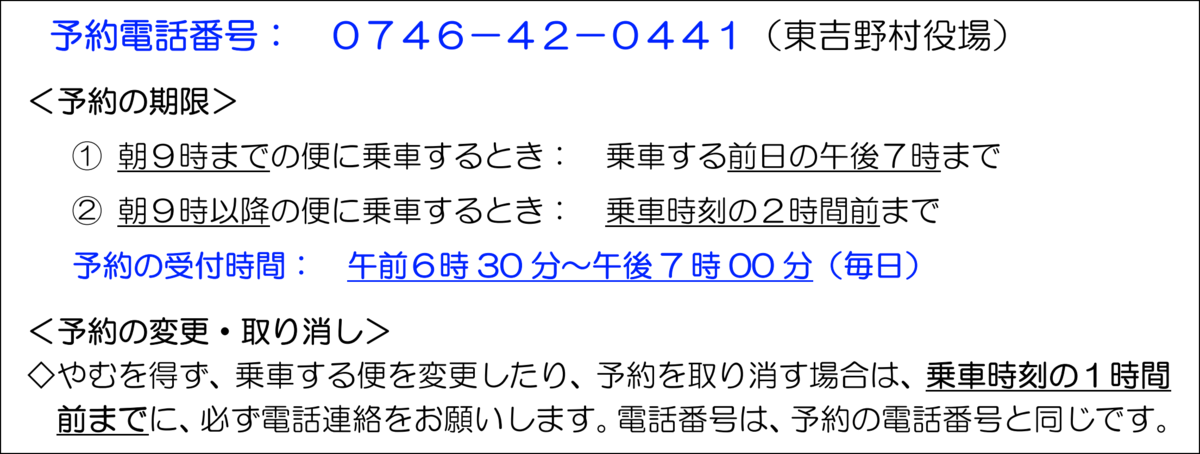 ①乗車日 ②乗車場所 ③出発時刻 ④利用人数 ⑤名前 ⑥連絡先電話番号