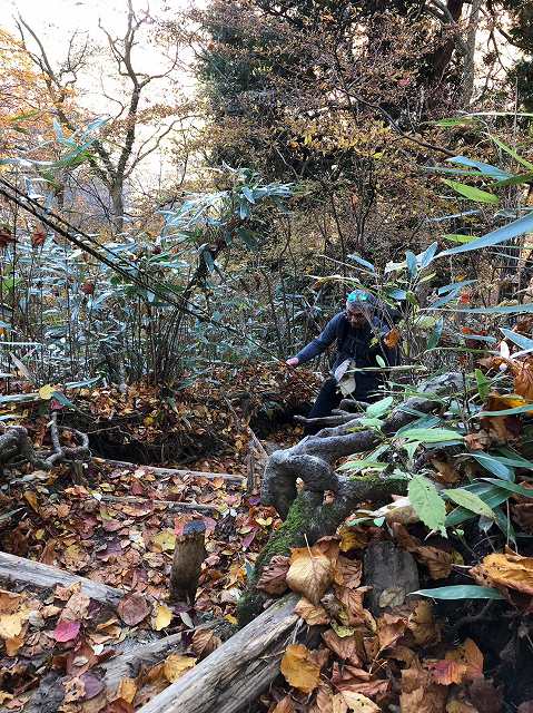 山はトラップだらけ。所々に倒木があるので、跨いで進んでいると、今度は下ばっかり気を取られて、頭上の倒木に頭突き、#$%&!(笑)